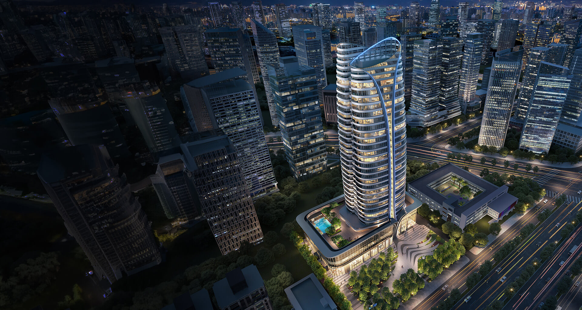 外觀3D透視輔以電腦合成情境示意圖,現場環境依實際為主,建設公司保有建築物設計修改權利,最終依實際竣工為準